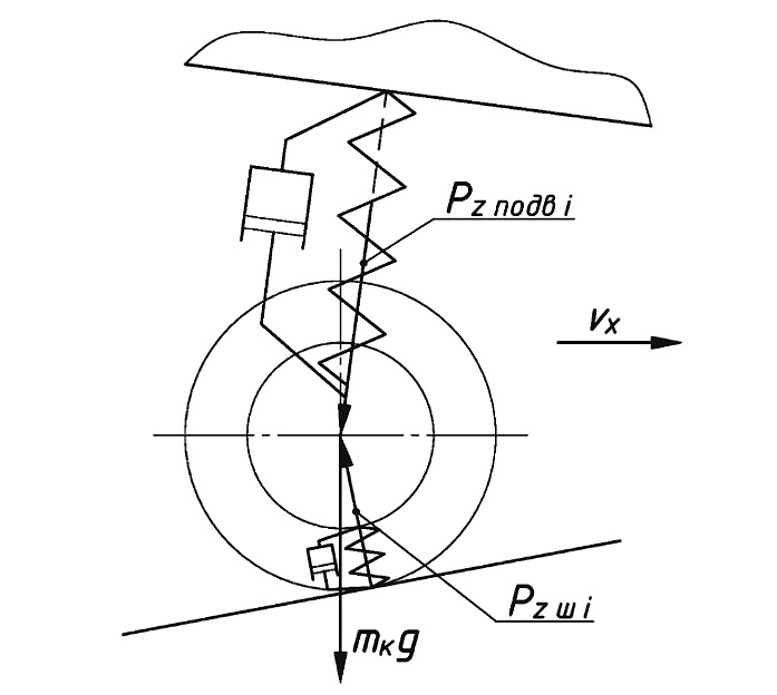 где mк — масса колеса; g — ускорение свободного падения; — ускорение центра колеса в вертикальном направлении; Pz.подв.i — сила со стороны подвески.
