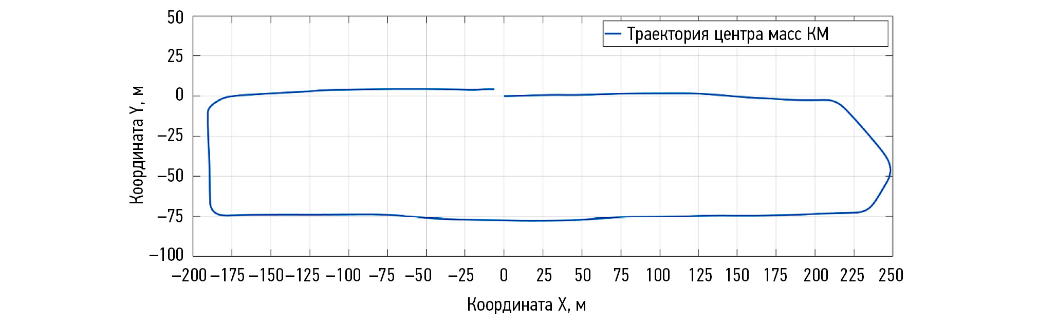 Рис. 11. Траектория центра масс математической модели цифрового двойника автомобиля.