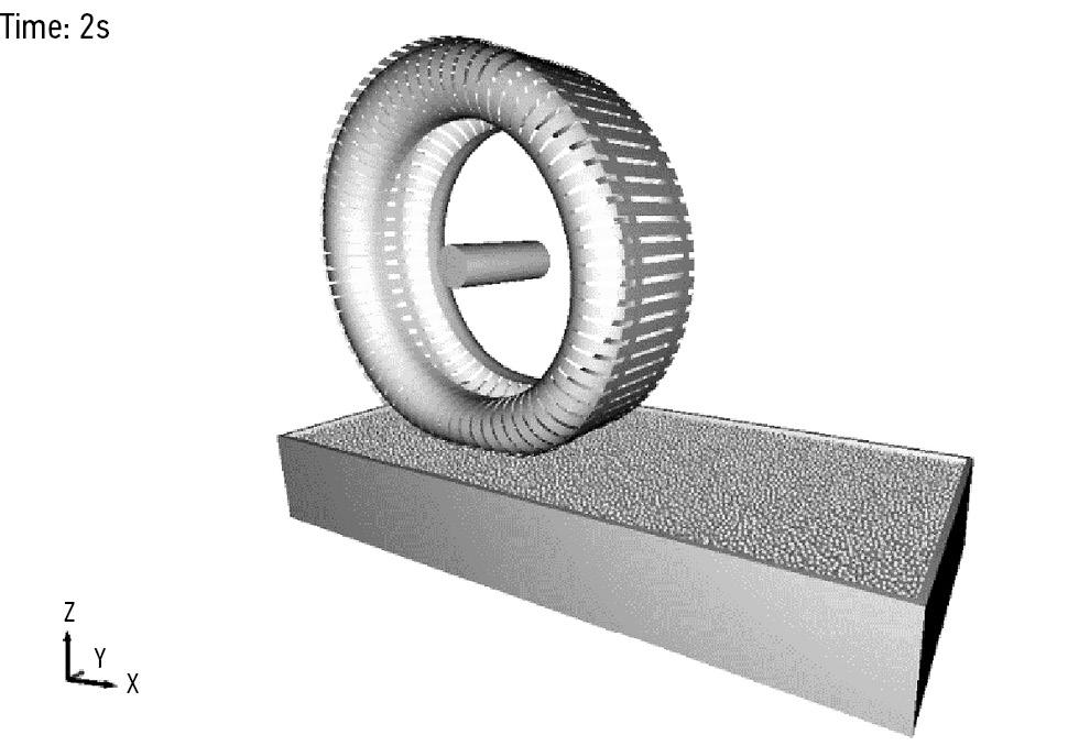 Физико-механические свойства несвязного грунта и конструкция колёсного движителя определяют тягово-сцепные и тягово-энергетические характеристики. Использование метода дискретных элементов позволяет разработать математическую модель грунта для уменьшения количества проводимых натурных испытаний и сокращения времени исследований. Моделирование взаимодействия движителя с деформируемым опорным основанием с учётом его реальных жёсткостных свойств позволяет проанализировать влияние его различных конструктивных параметров на тягово-сцепные характеристики. Совместное применение методов дискретных элементов и конечных элементов позволяет прогнозировать показатели опорной проходимости транспортного средства при наличии верифицированной математической модели несвязного грунта и движителя без проведения натурных испытаний.