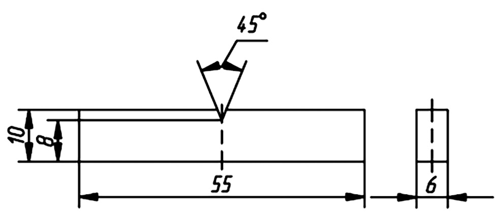 Эскиз образца с размерами для испытания на ударную вязкость приведён на рис. 4.