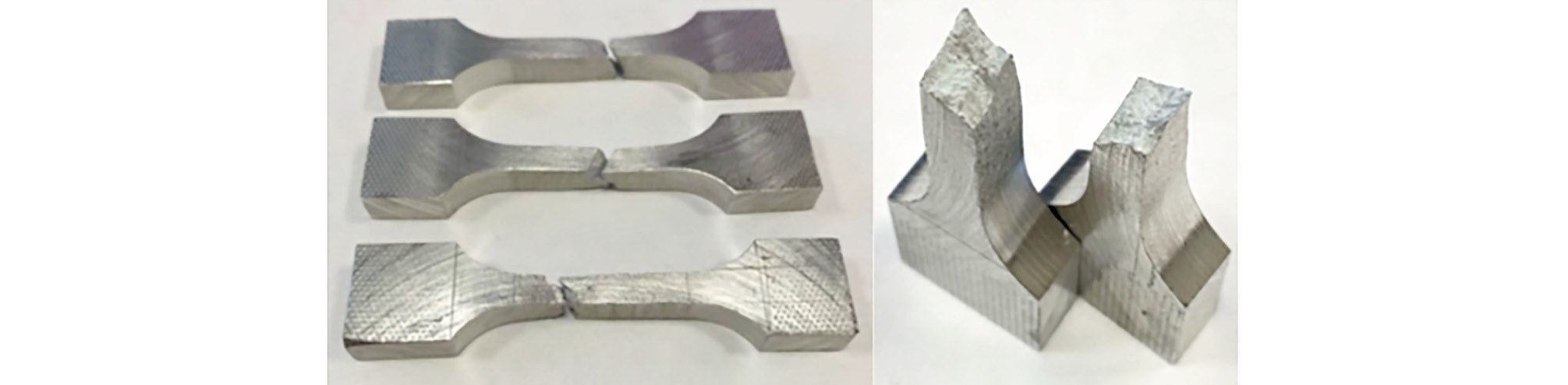 Рис. 11. Разорванные образцы из напечатанного алюминия (образец материала без сварки).