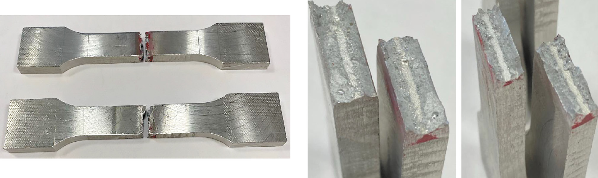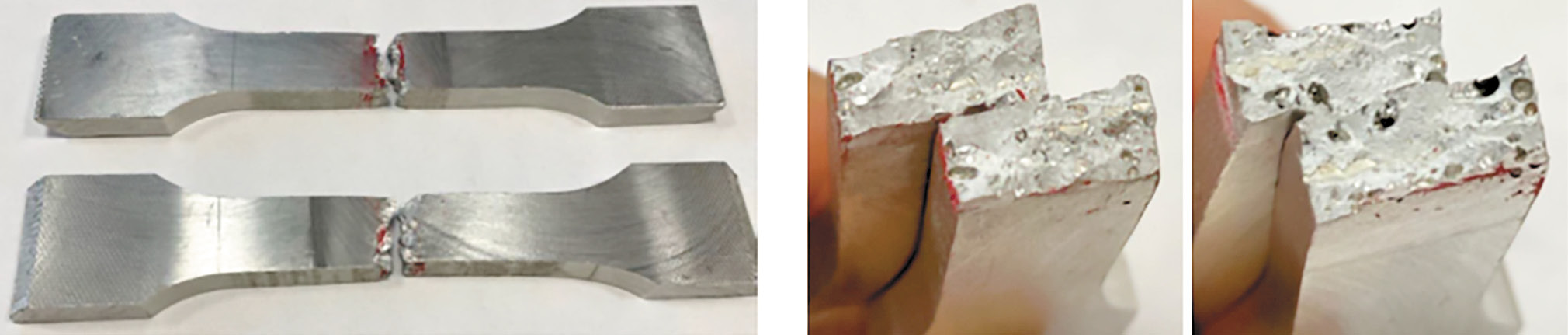 Рис. 15. Разорванные образцы из напечатанного алюминия, сваренного с 6082Т4.
