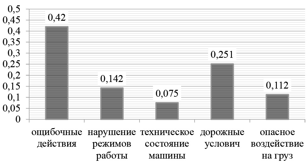 Как можно видеть из рис. 2, более половины причин ДТП, так или иначе обусловлены именно человеческим фактором. Данные результаты для сельскохозяйственных машин будут отличаться незначительно.