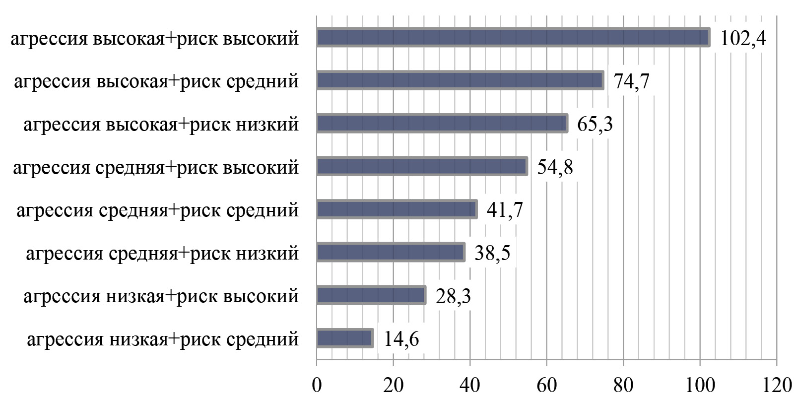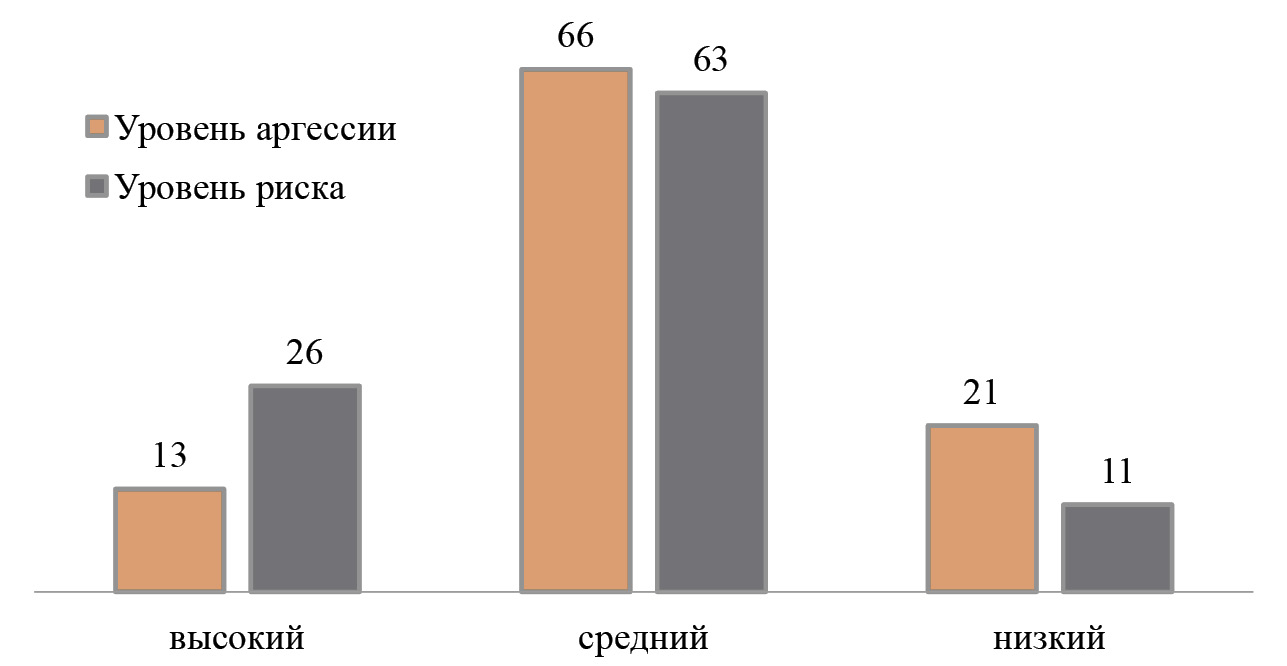 Рис. 6. Результаты исследований по факторам «уровень агрессии» и «уровень риска».