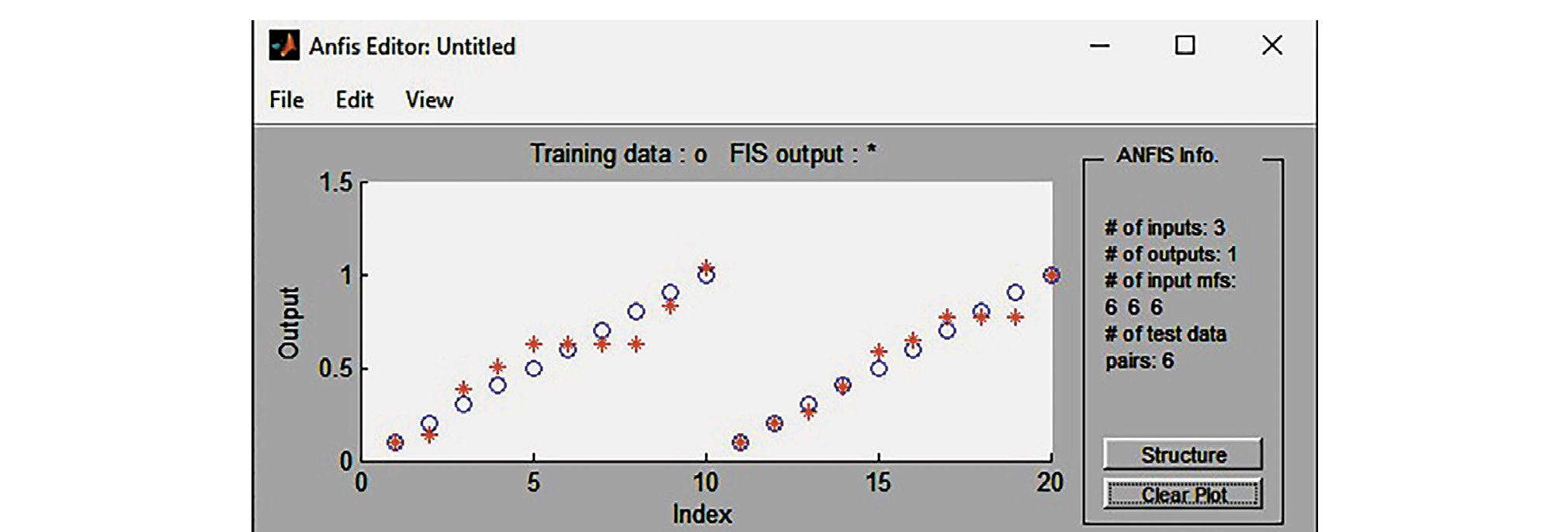На основе комплекса исходных множеств была построена нейро-нечёткая модель. Результат тестирования точности модели приведен на рис. 10.