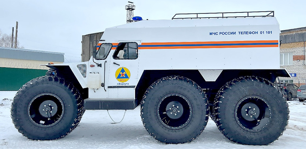Fig. 1. The Khishchnik-3930 snow-and-swamp vehicle with ultra-low-pressure tires.