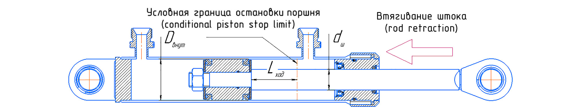 При расчёте коэффициента удалённости в момент втягивания штока (рис. 3) необходимо учитывать участок штока в штоковой полости гидроцилиндра.