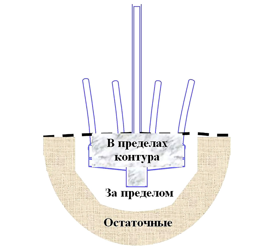 Поле напряжений (рис. 2) при взаимодействии с почвой можно разделить на следующие области: