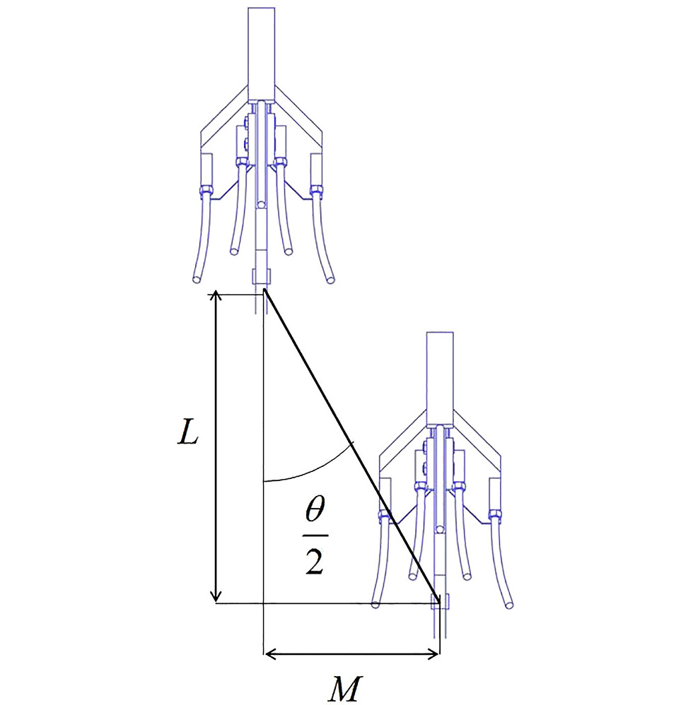 Рис. 6. Определение расстояния между рабочими органами в продольно-горизонтальной плоскости.
