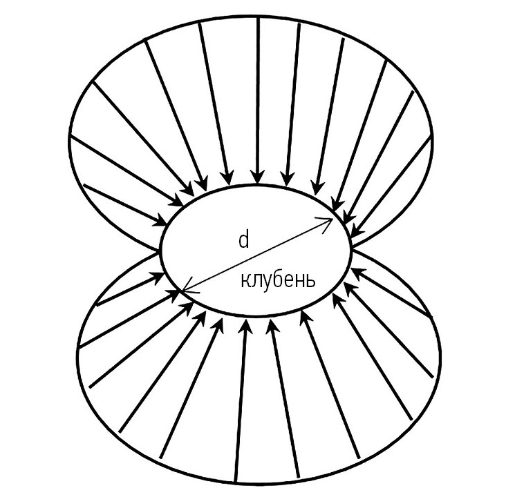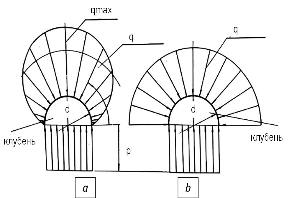 Рис. 1. Эпюра давлений на клубень, находящийся в грядке.