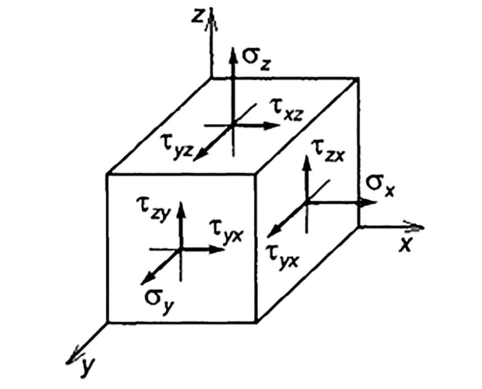 Рис. 2. Тензор механических напряжений элементарного куба грунта.