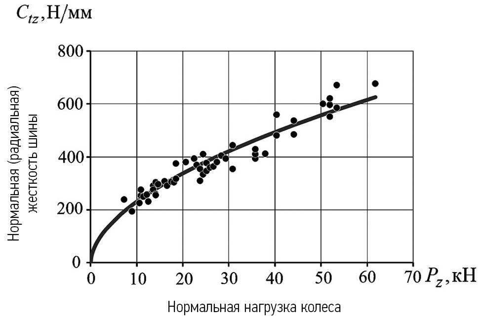 где — нормальная жесткость шины; — нормальная нагрузка колеса; — нормальная деформация шины;