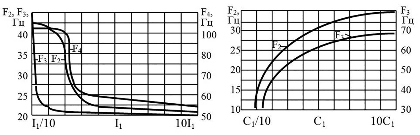 Table 4. Options for C1 and I2 values for a natural frequency of 14,2 Hz