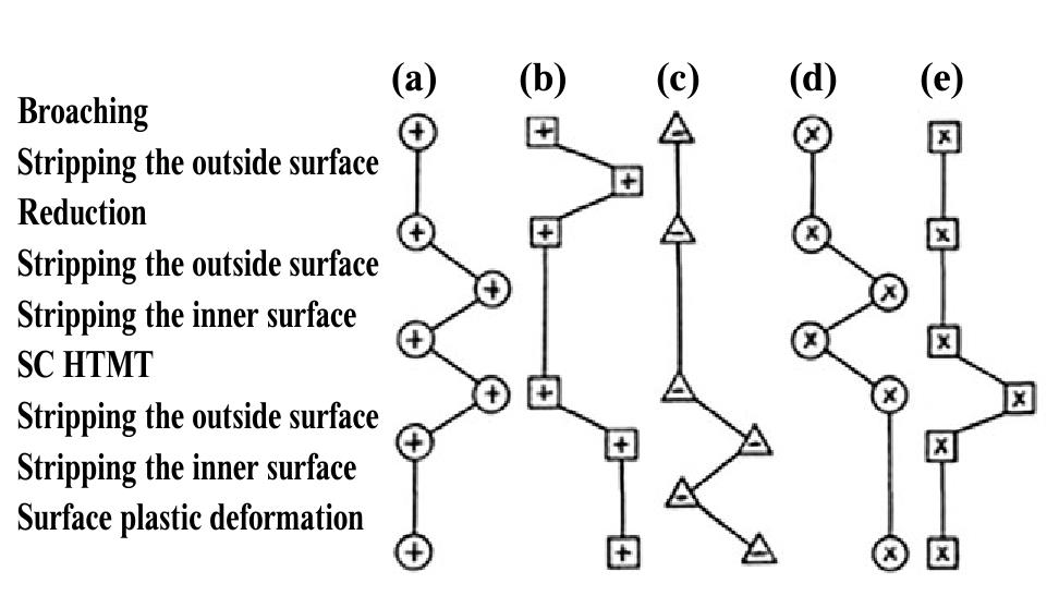The work under consideration proposes new stripping schemes for high-temperature thermomechanical processing of cylindrical hot-rolled solid and hollow billets with screw compression deformation, combining a high-performance method of shaping and strengthening of rolled products with cleaning the surface from scale using environmentally friendly (acid-free) methods, as well as using mechanical treatments for removing surface layer defects.