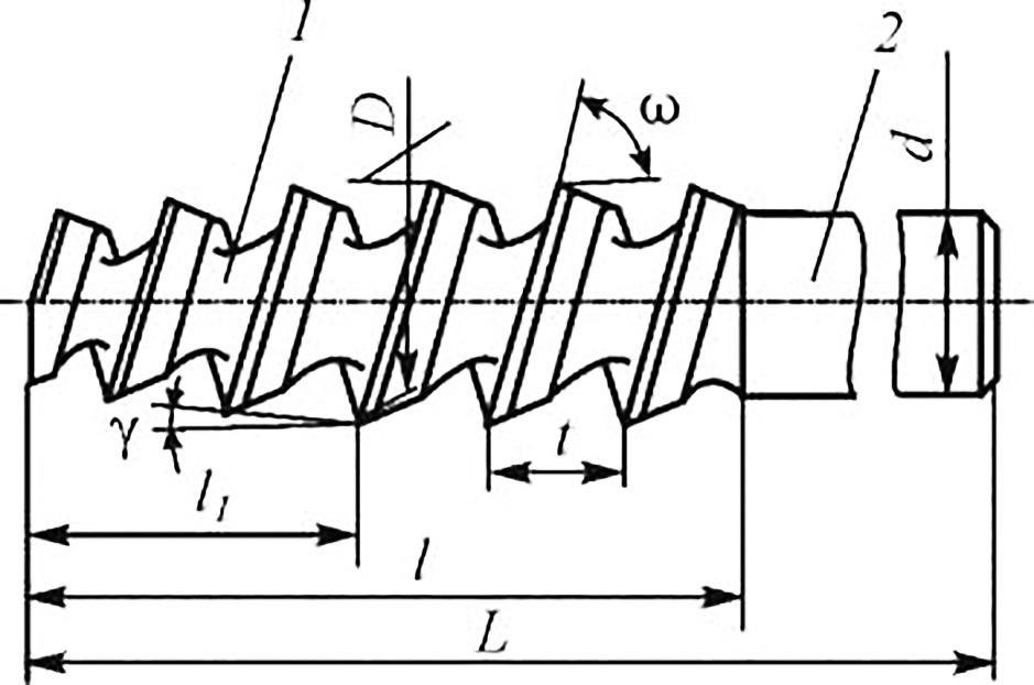 Fig. 8. Helical reamer: 1 – shank; 2 - cutting part