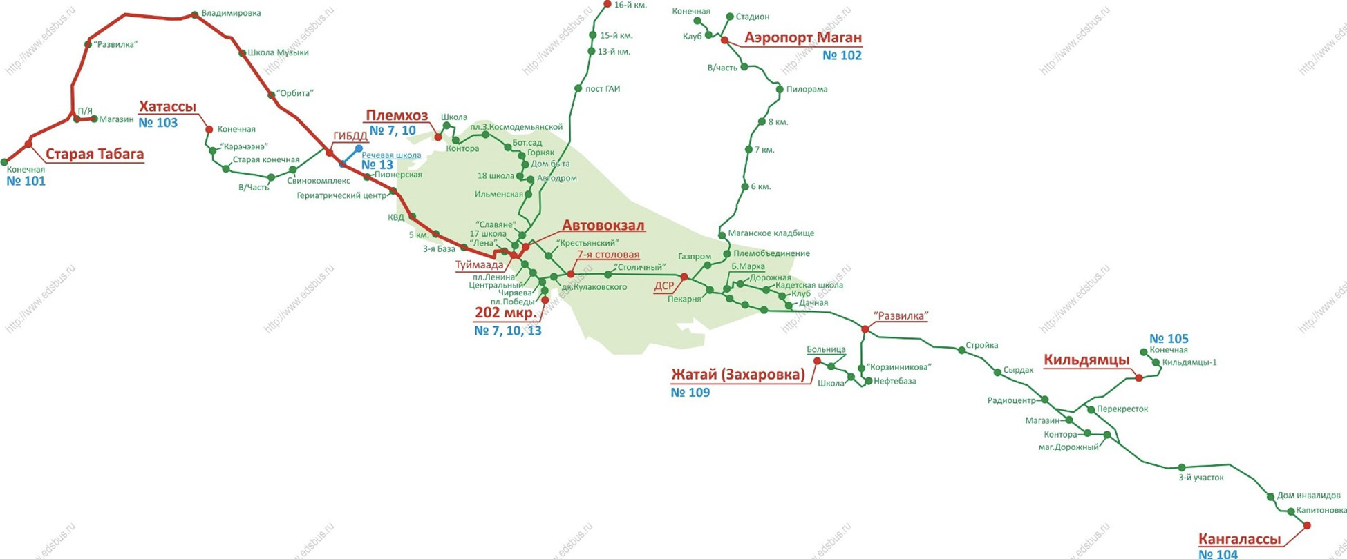 • маршрут № 101 Якутск – Табага общей протяженностью 31 км;
