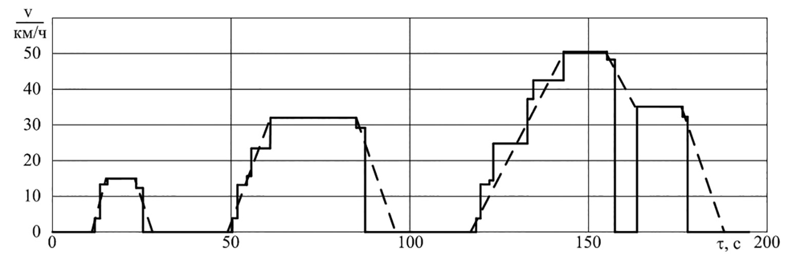 Thus, to assess the traction and speed characteristics of the bus, the proposed combined method can be used, which makes it possible to obtain a calculation of fuel consumption that is closer to the experimental data on the driving cycle. Based on the initial data of the vehicle, the effective performance of the engine is evaluated. A computational method for modeling tests and an experimental driving cycle for motor vehicles with a total mass of more than five tons are proposed.
