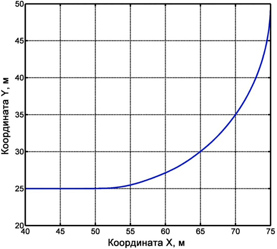 Рис. 6. Траектория при задаваемом движении по окружности радиуса 25 м