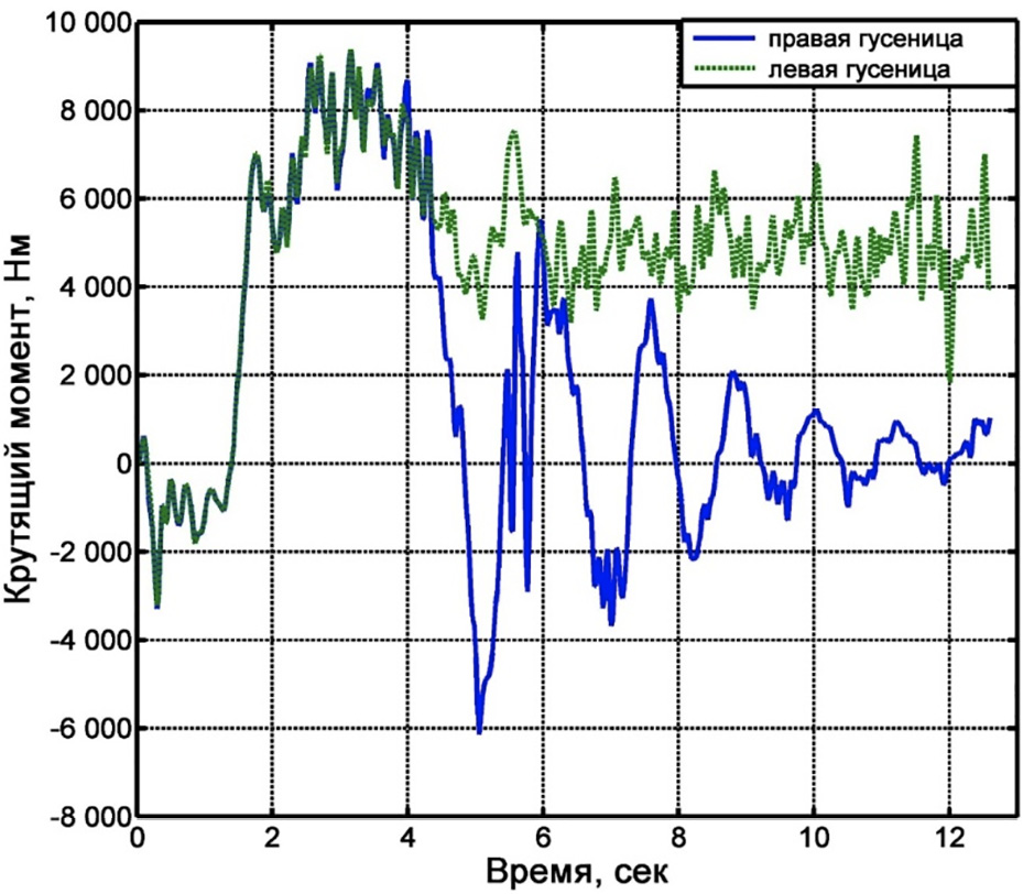 Рис. 7. Крутящий момент на правой и левой ведущих звездочках