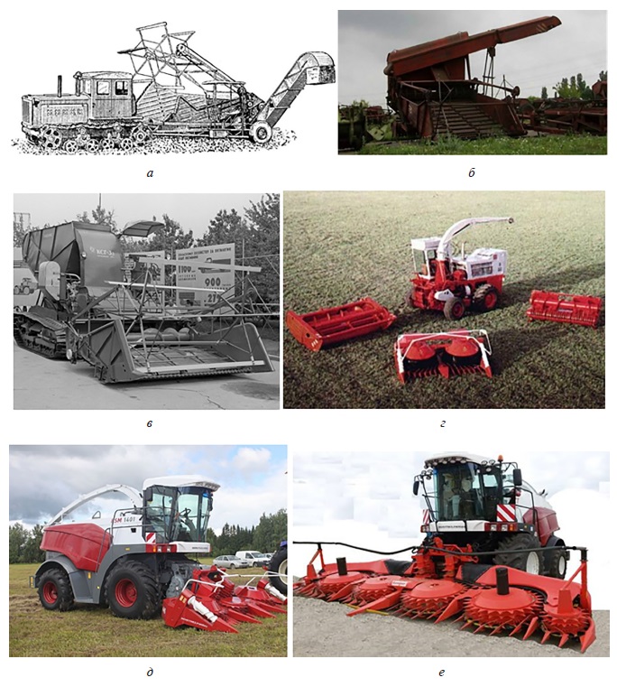Рис. 1. Произведенные в России ЗУК: а – «Колхоз»; б – «Сталинец 6»; в – СК 3; г – СК 5; д – «ДОН 1500»; в – РСМ 161