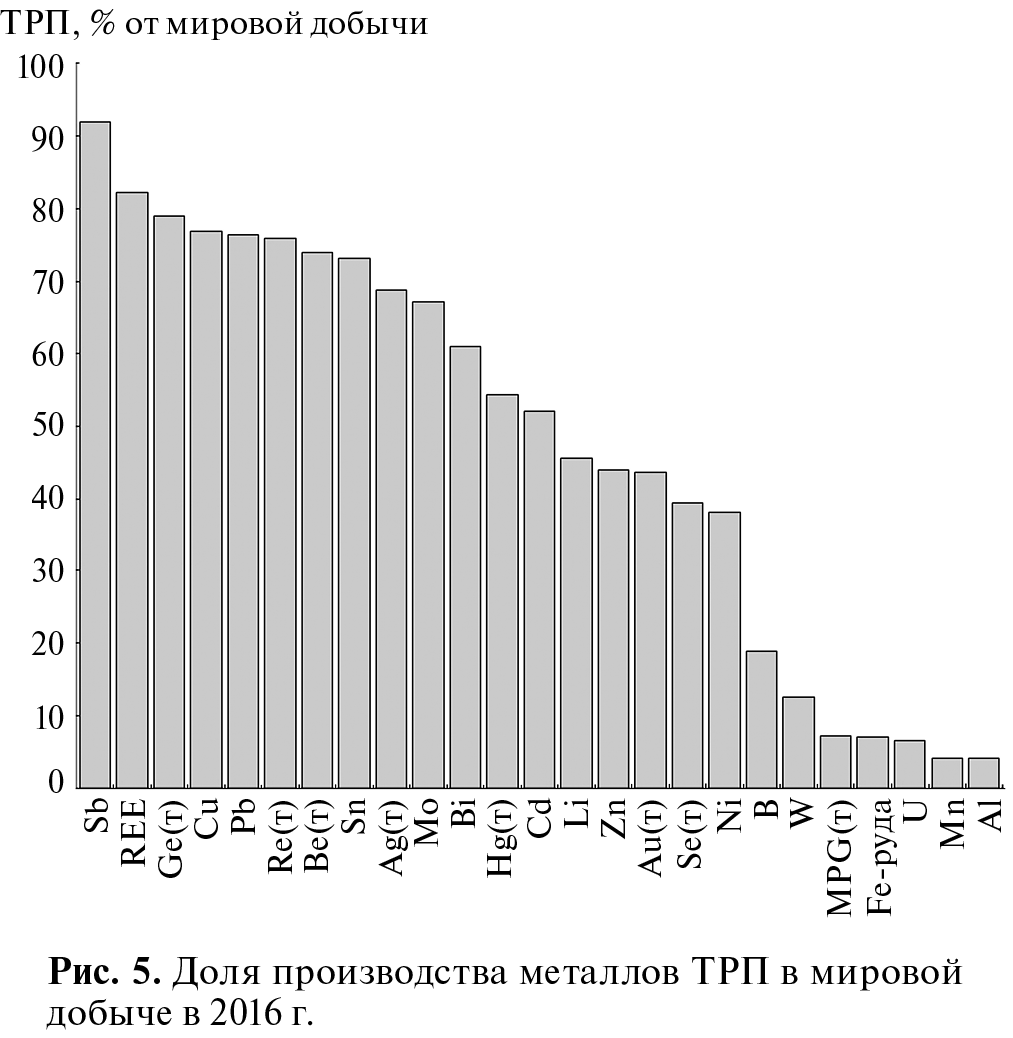 6. Fig. 5. The share of metal production in the global production of TRP in 2016