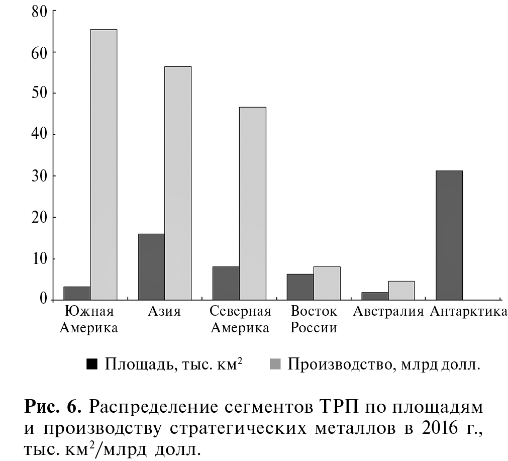 7. Fig. 6. Distribution of TRP segments by area and production of strategic metals in 2016, thousand km2 / billion dollars