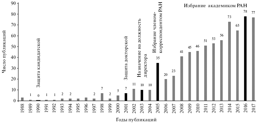 Рис. 4. Публикационная активность руководителя одного из институтов, ранее относившегося к РАМН