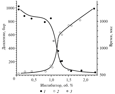 Рис. 5. Подавление взрыва водородо-воздушной стехиометрической смеси ингибитором