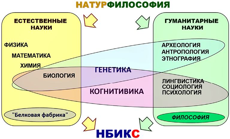 На начальных этапах этого пути существовал единый массив науки – натурфилософия. В дальнейшем из "натуральной" части выделились физика, биология, химия, другие естественные науки. Из "философской", ставшей инкубатором гуманитарных наук, – психология, социология, история, лингвистика. Это был закономерный процесс, сопровождавший первую промышленную революцию, эпоху географических открытий, когда вал новых знаний потребовал вычленения отдельных дисциплин. Двигаясь по пути углублённого познания окружающего мира, сопровождавшегося разделением предмета рассмотрения на всё более мелкие фрагменты, человечество, с одной стороны, детально изучило многие процессы, а с другой – утратило целостную картину мира [8 – 10].