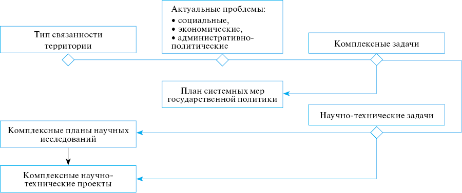 Возвращаясь к формированию комплексной научно-технической программы, отметим, что после того, как были определены типы связанности территорий, следующим шагом Совета по приоритету стало определение направлений её реализации. Для этого формулировались наиболее важные проблемы, касающиеся потребностей человека, социальных групп, запросов хозяйствующих субъектов, развития экономики, а также реализации полномочий органов государственной власти и местного самоуправления. Анализ актуальности проблем проводился путём количественной и качественной оценки. Определялась доля населения и/или хозяйствующих субъектов, которых затрагивает данная проблема, масштаб её негативного влияния на хозяйственную деятельность, качество жизни населения. Затем выявлялись субъекты, заинтересованные в решении проблемы и обладающие материальными ресурсами, что позволило рассматривать их в качестве потенциальных заказчиков научно-технических проектов в составе указанной программы. Это и российские хозяйствующие субъекты, и международные организации, и профильные федеральные органы исполнительной власти. Допустимо, что при наличии актуальной проблемы, но отсутствии заказчика может ставиться задача по его "формированию" – проведению соответствующей аналитической и разъяснительной работы, подготовке проектов нормативных актов.