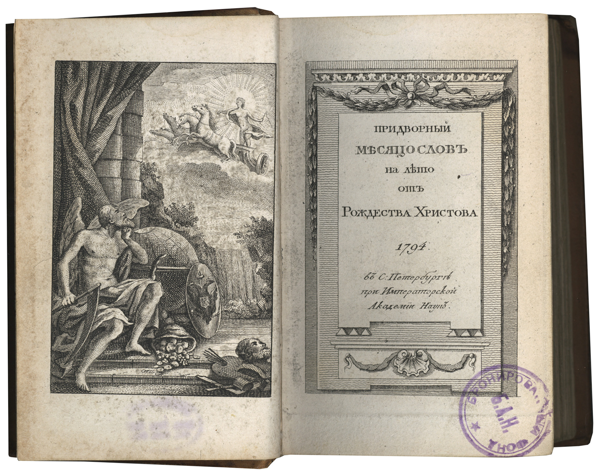 Фронтиспис и титульный лист "Придворного месяцослова… на 1794 год"