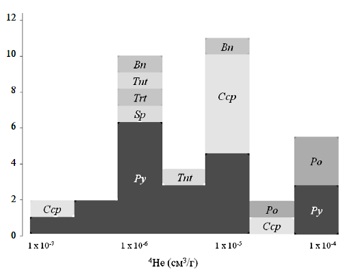 Таблица 2. Концентрации 4Не в изученных образцах сульфидов