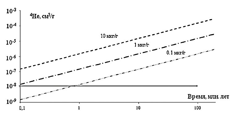 До недавнего времени изотопные системы, в которых радиогенный гелий выступает в качестве дочернего компонента, считались неприменимыми для датирования в силу его практически моментальной миграции за пределы кристаллических структур большинства минералов даже в результате незначительного нагрева (Герлинг, 1939, 1961; Hurley, 1954 и др.). Поэтому область применения U-Th-He метода в основном была ограничена решением задач по геотермохронологии (Farley, 2002; Reiners, Brandon, 2006 и др.) или, как было показано в работе Шмидта с коллегами (Schmitt et al., 2011), метод может быть использован для датирования молодых изверженных пород. Однако недавние исследования обнаружили аномально высокую сохранность радиогенного гелия в самородных металлах (Шуколюков и др., 2012а). Это послужило основой для создания 190Pt-4He метода изотопной геохронологии (Шуколюков и др., 2012б).