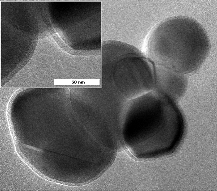 Келлер и Маккей (1992a) описали наносфероиды, которые содержали в среднем 89 мас.% SiO2, а некоторые – до 93 мас.% при небольшой примеси Al. Высокая кремнеземистость и сферическая форма, по мнению авторов, является признаком их образования в результате конденсации из газового облака. Именно такие наносфероиды и были зафиксированы в рамках настоящей работы как в образцах лунного реголита, так и в препаратах жаманшинита.