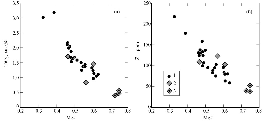 - Grove T.L., Baker M.B. Phase equilibrium controls on the tholeiitic versus calc-alkaline differentiation trends // J. Geoph. Res. 1984. V. 89. P. 3253–3274.