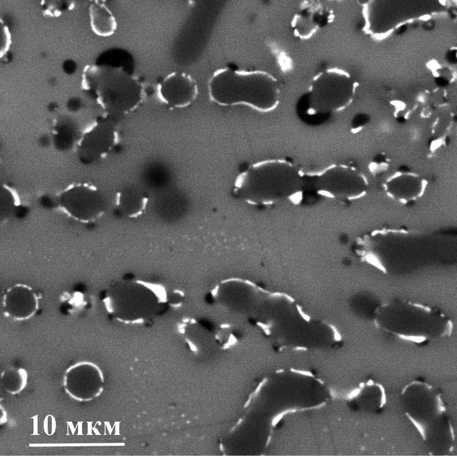 Образцы полировались и напылялись тонким проводящим слоем углерода. Съемка микрофотографий осуществлялась в режиме обратно рассеянных электронов с вещественным контрастом (BSE – back-scattered electrons) с увеличениями от 8.5 до 2500 раз.