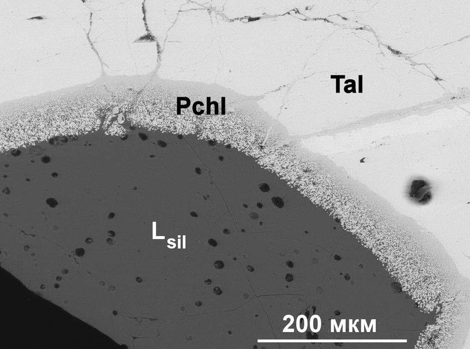 Фторидные, хлоридные, карбонатные, фосфатные и другие соли, так же как вода и углекислота, имеют в силикатных расплавах ограниченную растворимость. Понижение температуры и давления, а также кристаллизация алюмосиликатных минералов, приводит к обогащению расплава солевыми компонентами, а по достижению концентрации насыщения происходит отделение солевого расплава. Кроме того, солевой расплав может образовываться в условиях сосуществования силикатного расплава с трансмагматическим флюидом, формирующего отдельную фазу. Эта водно-углекислотная фаза растворяет в себе различные соли и их концентрации, в зависимости от состава этой фазы могут достигать 10–15 мас.% (Котельникова, Котельников, 1997). Солевой расплав существует в природе, хотя, как правило, не сохраняется из-за высокой растворимости солевых компонентов (по сравнению с силикатами) при их вовлечении в гидротермальную деятельность. Ее реликты известны в виде включений (Панина, Моторина, 2006; Андреева, 2000).