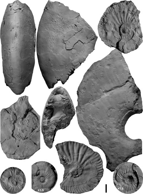 Аммониты. Для бореальных районов характерны исключительно арктоцефалитины: Arcticoceras excentricum [M], Greencephalites belli [M], Costacadoceras bluethgeni Rawson [m]. В перитетическом бассейне Нижнего Поволжья резко доминируют паркинсонииды Oraniceras besnosovi [M] и Sokurella elshankae sp. nov [m], из перечисленных бореальных форм достоверно отмечены только макроконхи.