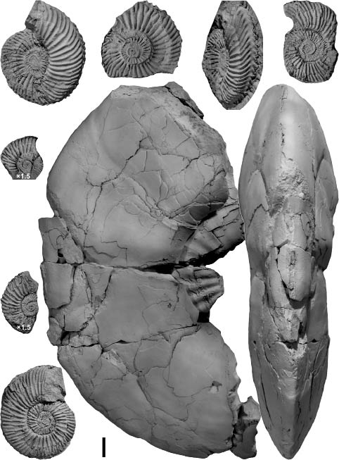 Таблица I. Аммониты из зоны Michalskii и нижней части зоны Besnosovi севера Волгоградской области. Все изображения уменьшены (×0.75).