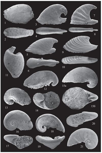- Helcionella sp.: Runnegar, Jell, 1976 (Vallototheca sp.).