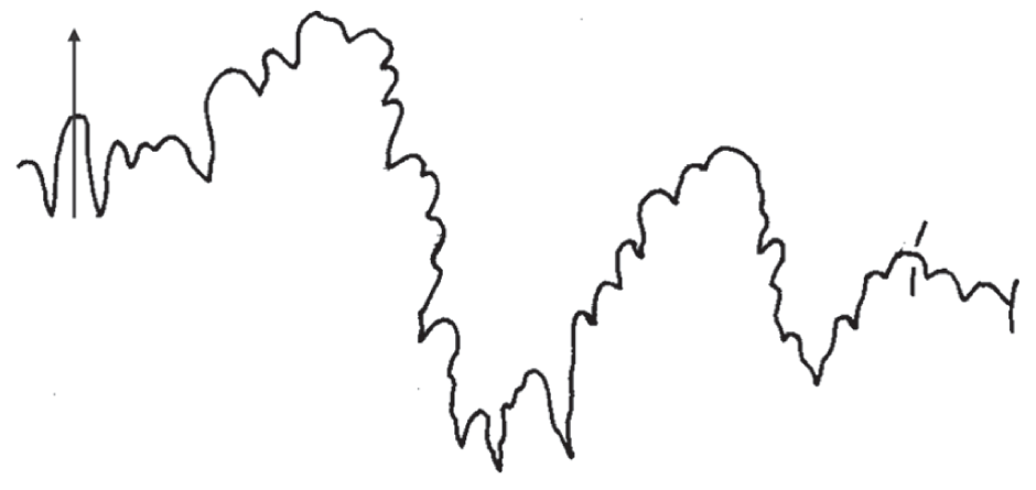 Рис. 2. Лопастная линия Yakutosirenites (Yakutosirenites) pentastichus (Vozin), экз. № 3/2080 (В = 12 мм, Ш = 7.5 мм); Северное Приохотье, бассейн р. Яна Охотская, р. Вторая Сентябрьская; верхний карний, зона pentastichus.