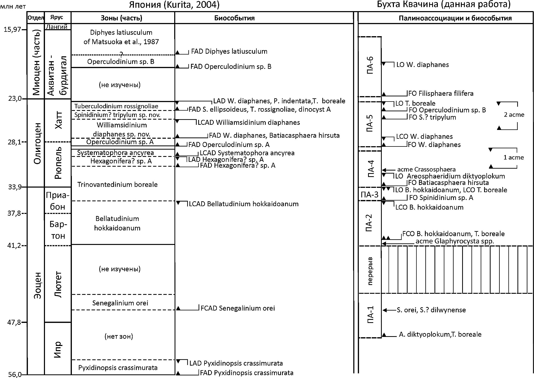 - Kurita H. Paleogene dinoflagellate cyst biostratigraphy of Northen Japan // Micropaleontology. 2004. V. 50. № 2. P. 1–48.
