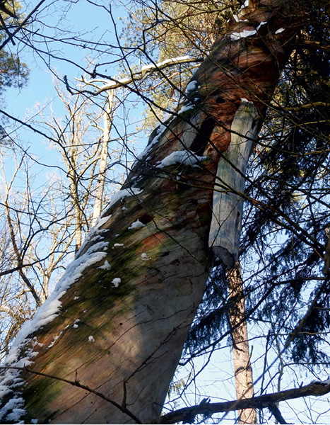 Рис. 1. Сосна c бортью в Беловежской пуще (Польша). Сохранилась деревянная планка, защищавшая леток. Фото Т. Неходы.