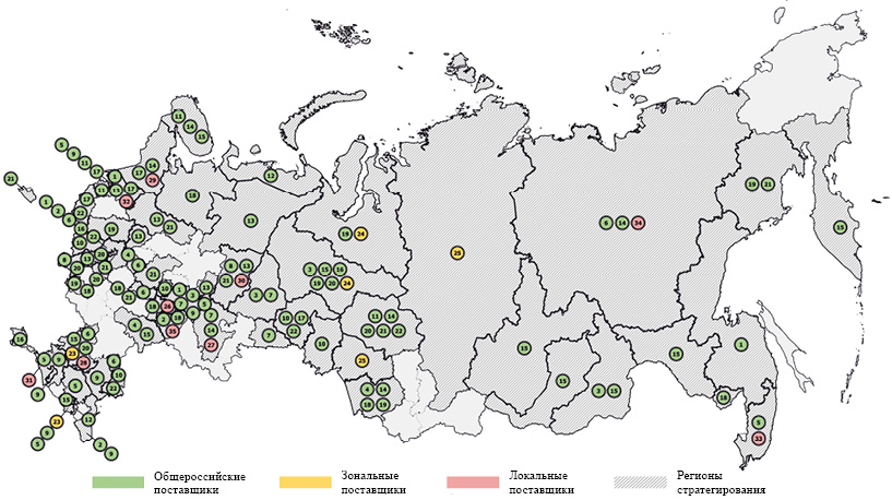 — локальные поставщики характерны на Северо-Западе, Дальнем Востоке, Северном Кавказе, Поволжье;