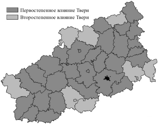 Table 1. The influence of capitals on the municipalities of the Tver Region (number of districts)