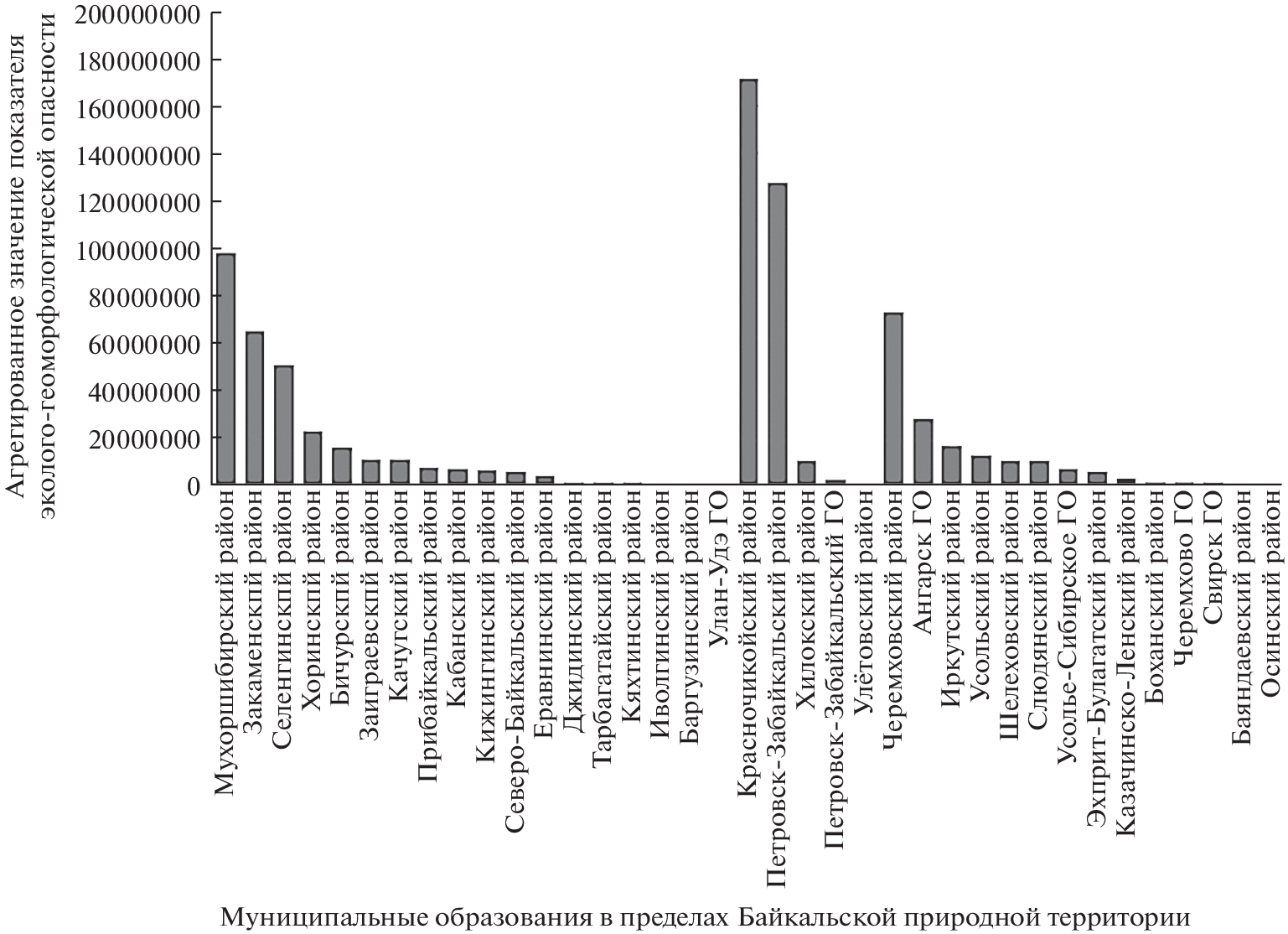 A method for calculating the complex index of the eco-geomorphological hazard of mining territories according to their influence on the ecological situation in the Baikal region is proposed. The described approach makes it possible to characterize in detail the consequences of mining for the ecological situation in the region. The proposed assessment takes into account not only the area of disturbed lands, but also other factors affecting the possibility of transport of pollutants and the degree of their hazard (in particular, the type of raw material extracted, the geomorphological position of the mining territories, the degree of the anthropogenic transformation of landscapes, the composition of anthropogenic deposits and the degree of reclamation of disturbed lands). To test the methodology, the complex index of the eco-geomorphological hazard of lands disturbed by mining was calculated for municipalities of the Baikal region for 2020. Municipalities were ranked according to the value of the complex index and a corresponding map was compiled.