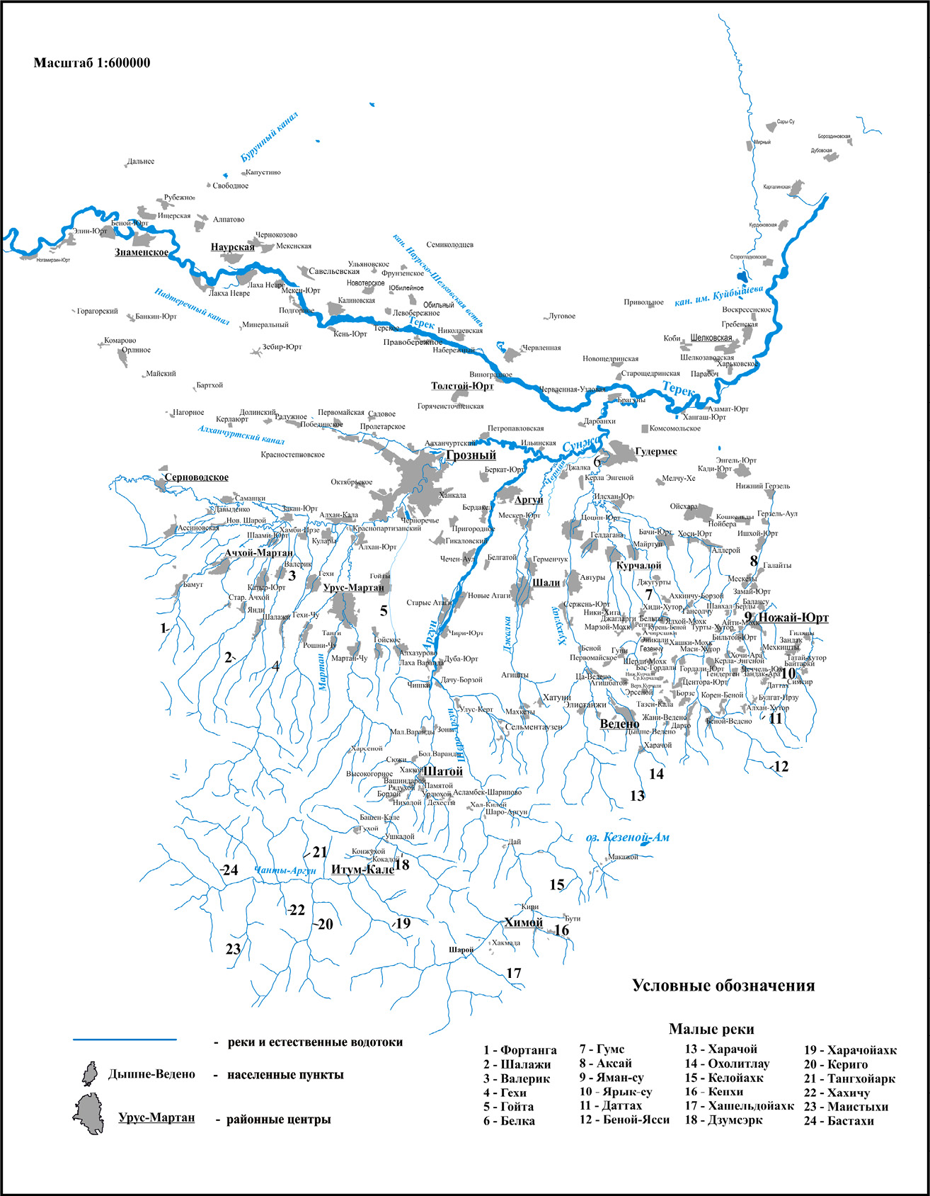 Практически все реки Чеченской Республики можно отнести к малым (табл. 1). Относительно крупными среди них являются рр. Терек, Сунжа и Аргун.