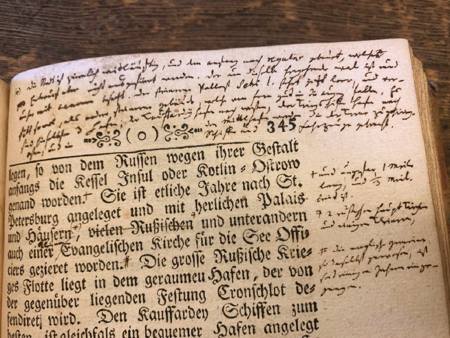 Рис. 2. Пометки А. Ф. Бюшинга в книге Х. Н. фон Винсгейма, РНБ.