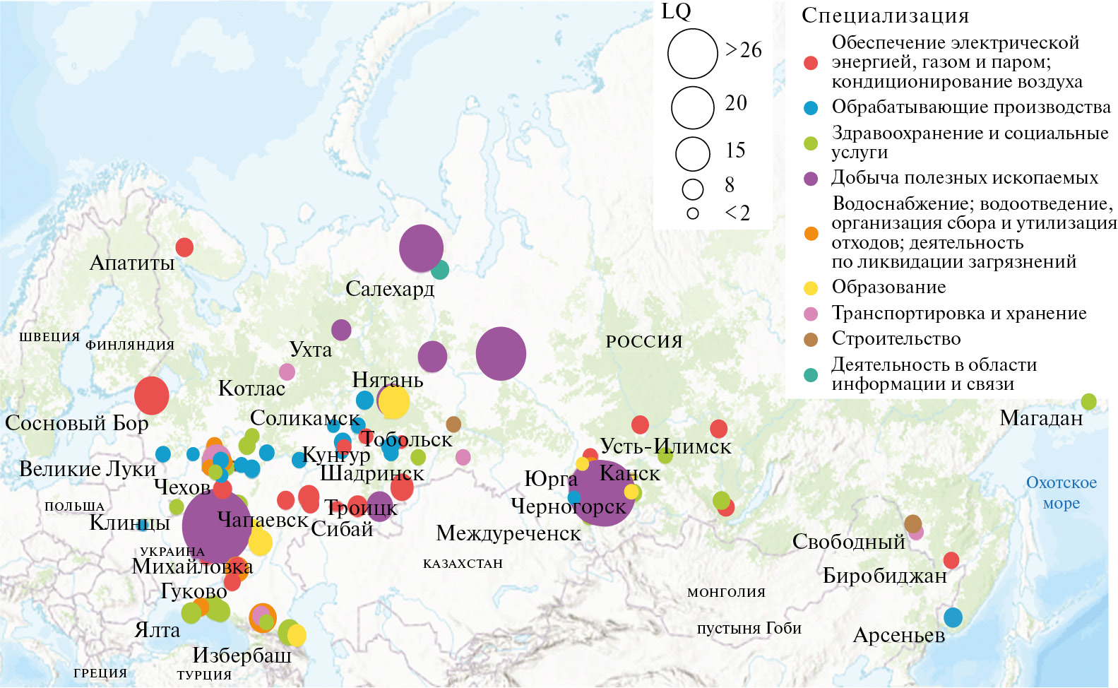 3 LQРФ — доля занятых в отрасли города к соответствующей доле по РФ.