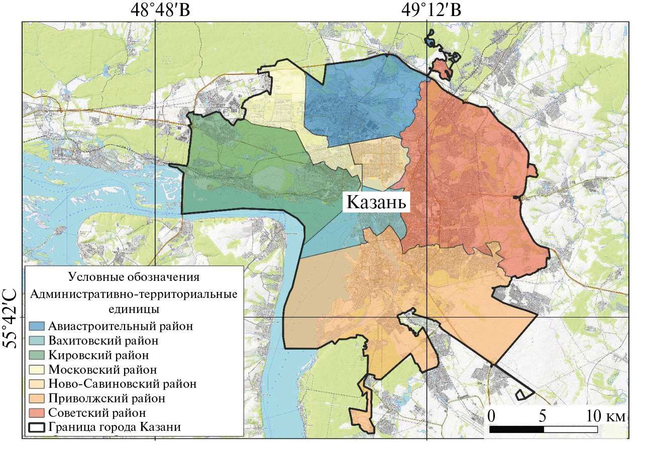 Fig. 1. Administrative division of the city of Kazan.